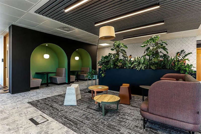 這個(gè)空間的風(fēng)格是對(duì)硅谷科技公司為團(tuán)隊(duì)組織空間的方式的認(rèn)可。其外觀和感覺甚至植物景觀的設(shè)計(jì)也與其它樓層有細(xì)微的不同,但仍與整體配色方案相一致。生物景觀設(shè)計(jì)是本案的一個(gè)重要組成部分,這一區(qū)塊交由專業(yè)的團(tuán)隊(duì)去做規(guī)劃,整個(gè)項(xiàng)目共整合了400多種不同的植物類型。