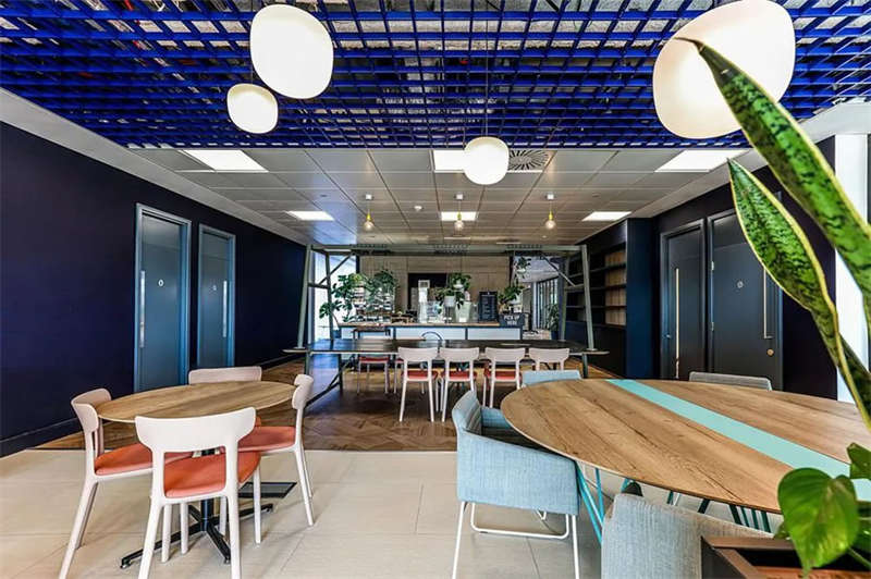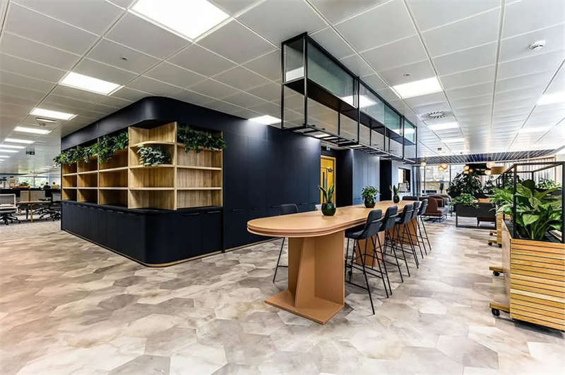 此番改造的一個(gè)重要主因是給到員工愿意回歸辦公室的理由。這意味著提升整體設(shè)施的實(shí)用性和美觀性,同時(shí)增加協(xié)作空間并整合遠(yuǎn)程工作人員的需求。因此對(duì)當(dāng)代前沿科技的投資成為關(guān)鍵要素。為了支持混合工作模式,設(shè)計(jì)公司在早期就任命了一名AV專家,以便可以通過應(yīng)用程序或基于桌面的預(yù)訂系統(tǒng)預(yù)訂工作空間。同時(shí),傳統(tǒng)工作站與可替代工作設(shè)施之間的界限也進(jìn)一步擴(kuò)大,平均(NIA室內(nèi)凈面積)比率為1:10。此外,之前辦公桌與員工1:1的比例也被新的1:1.6比例所取代。