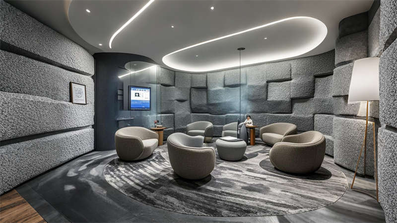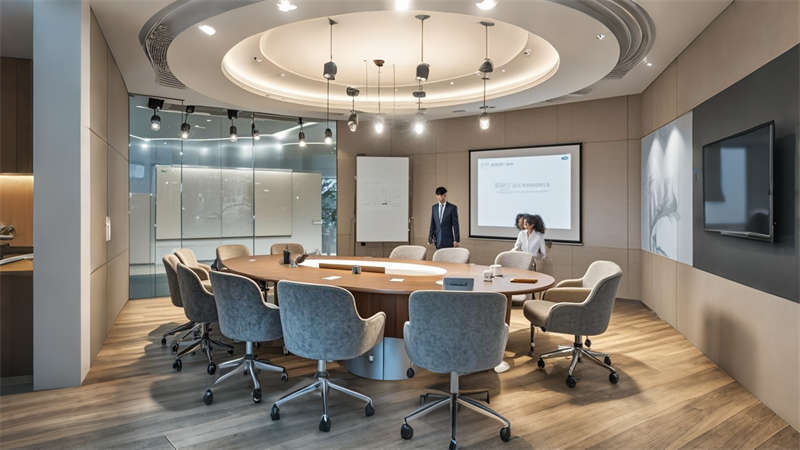 照明設計采用 3000K-4000K 色溫分區(qū)控制,重點區(qū)域設置磁吸軌道燈滿足展陳需求。聲學處理方面,關鍵會議室采用雙層中空玻璃與吸音毛氈墻面,確保 45 分貝以下靜音標準。全案貫徹 LEED 認證標準,90% 建材達到環(huán)保回收要求,實現美學價值與實用功能的有機統(tǒng)一。