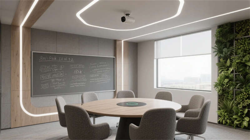設(shè)計(jì)更以人文觸覺消解科技冰冷感:企業(yè)標(biāo)志性的霧青藍(lán)貫穿于軟裝細(xì)節(jié),4000K色溫照明呵護(hù)視覺舒適度,模塊化綠植系統(tǒng)構(gòu)建立體呼吸網(wǎng)絡(luò)。從智能調(diào)光玻璃到聲學(xué)毛氈墻面,每處創(chuàng)新皆隱于無形,讓科技真正服務(wù)于人的感知體驗(yàn)。這座合肥辦公空間,正以靜默的設(shè)計(jì)語言詮釋著未來工作場(chǎng)域的更多可能——當(dāng)自然、科技與人文在此共振,辦公不再是程式化的容器,而成為激發(fā)創(chuàng)造力的有機(jī)生命體。