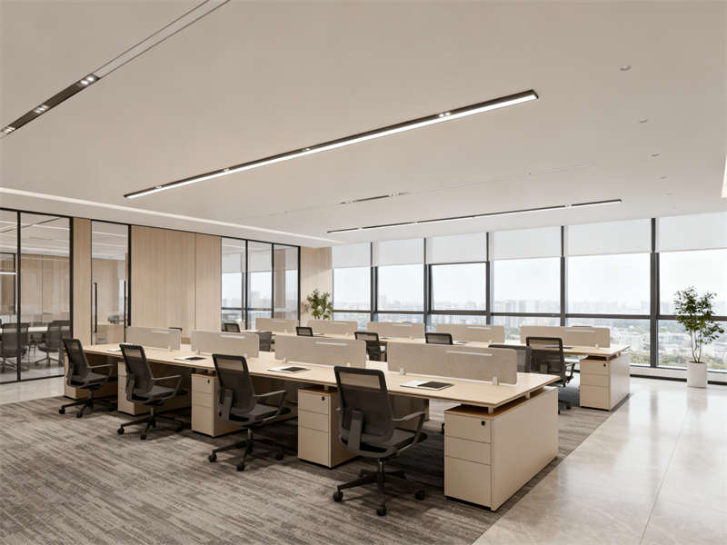 室內(nèi)空間規(guī)劃合理,前臺(tái)接待區(qū)簡(jiǎn)潔大方,通過(guò)柔和的燈光與簡(jiǎn)約的家具搭配,營(yíng)造出親切的接待氛圍;開(kāi)放式辦公區(qū)注重空間的通透性與互動(dòng)性,合理的工位布局既保證了員工的獨(dú)立辦公空間,又方便團(tuán)隊(duì)間的溝通協(xié)作;獨(dú)立辦公室則兼顧辦公與休憩功能,簡(jiǎn)約的家具擺放與柔和的色調(diào),為使用者提供安靜、專(zhuān)注的辦公環(huán)境;會(huì)議室根據(jù)不同需求設(shè)計(jì),整體風(fēng)格統(tǒng)一,功能完善,滿足各類(lèi)會(huì)議場(chǎng)景的使用;休閑茶水區(qū)則為員工提供了放松的空間,簡(jiǎn)約的設(shè)計(jì)搭配溫馨的細(xì)節(jié),讓員工在工作間隙能得到舒適的休憩。?
