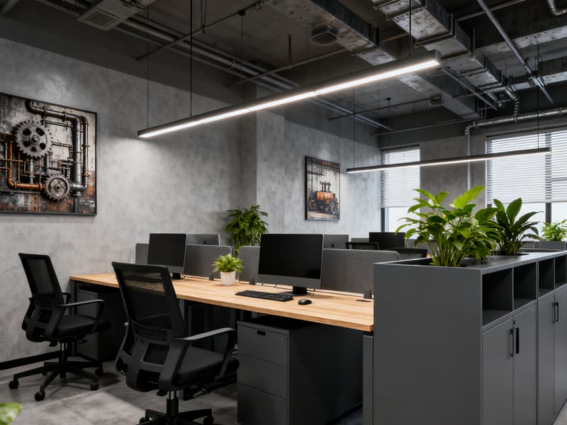 本設(shè)計(jì)聚焦6000平廠房的工業(yè)屬性與實(shí)用需求,以現(xiàn)代工業(yè)風(fēng)為核心,打造高效、規(guī)范且兼具人文關(guān)懷的生產(chǎn)辦公空間。整體色調(diào)以深灰、淺灰、黑色為主,搭配局部橙色警示色與淺木色暖調(diào),既契合工業(yè)空間的專業(yè)質(zhì)感,又避免環(huán)境的冰冷與壓抑。