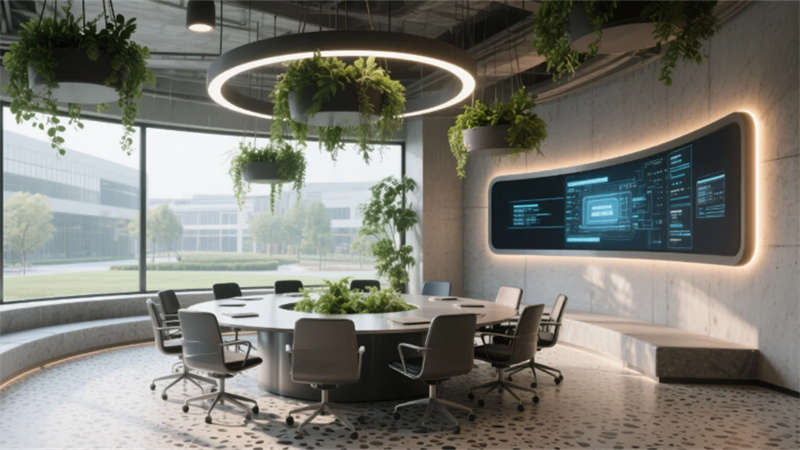 空間摒棄傳統(tǒng)隔斷,運(yùn)用通透玻璃與可移動(dòng)裝置實(shí)現(xiàn)功能轉(zhuǎn)換,陽光透過智能窗控系統(tǒng)灑入每個(gè)角落。材質(zhì)與光影的精心編排,構(gòu)建出兼具高效協(xié)作與人文關(guān)懷的現(xiàn)代辦公生態(tài),詮釋創(chuàng)新企業(yè)的精神內(nèi)核。