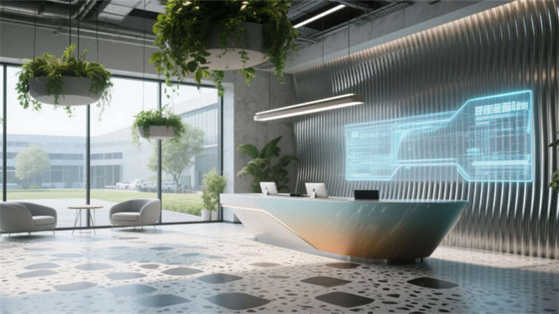 智能協(xié)作區(qū)配備環(huán)形數(shù)字屏幕與可書寫隔斷,激發(fā)團(tuán)隊(duì)創(chuàng)造力;靜音艙體與獨(dú)立辦公室滿足深度工作需求。員工休憩區(qū)通過柔和的馬卡龍色調(diào)與曲線家具,營造松弛氛圍。接待廳的波紋金屬墻與全息投影臺(tái),在溫潤木元素中點(diǎn)綴未來感。