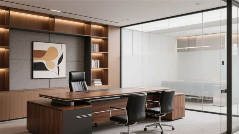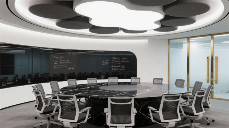 私密空間演繹克制的精致:經(jīng)理辦公室玻璃隔斷內(nèi),胡桃木書桌與毛氈吸音墻平衡理性與溫度;總裁套間則以大理石暗光墻面對(duì)話城市天際線,黃銅細(xì)節(jié)點(diǎn)亮低調(diào)的尊崇。會(huì)議室黑石長(zhǎng)桌與磁吸玻璃書寫面碰撞靈感,而公共休息區(qū)陶土花盆與橄欖綠軟墊,在混凝土中島上生長(zhǎng)出松弛的煙火氣。
