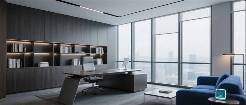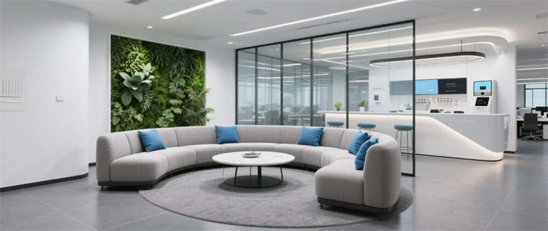 這座金融企業(yè)辦公樓的設(shè)計(jì)以智能科技融合為核心,巧妙結(jié)合現(xiàn)代簡約美學(xué)與功能性,為日常辦公注入活力與效率。整體空間采用流暢的線條和中性色調(diào),通過玻璃隔斷和金屬細(xì)節(jié)營造通透感,藍(lán)色元素作為視覺亮點(diǎn),象征創(chuàng)新與穩(wěn)定。大堂區(qū)以開放式布局歡迎訪客,智能照明系統(tǒng)調(diào)節(jié)氛圍;開放式辦公區(qū)強(qiáng)調(diào)協(xié)作,可調(diào)節(jié)家具提升舒適度;高管辦公室則注重私密與高效,落地窗引入自然光。會(huì)議室配備先進(jìn)投影技術(shù),確保討論精準(zhǔn);休息區(qū)和食堂區(qū)融入綠植與社交元素,促進(jìn)員工放松;多功能廳支持靈活轉(zhuǎn)型,滿足多樣活動(dòng);休閑區(qū)融合健身與閱讀,體現(xiàn)人文關(guān)懷。設(shè)計(jì)不僅優(yōu)化工作流線,還強(qiáng)化了企業(yè)形象,將科技感與舒適性無縫銜接,打造一個(gè)前瞻性的辦公環(huán)境。位于合肥的這座空間,以城市現(xiàn)代精神為靈感,成為金融行業(yè)的標(biāo)桿之作。