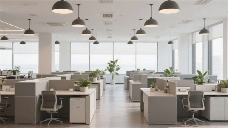 本辦公樓設(shè)計(jì)以簡(jiǎn)約現(xiàn)代風(fēng)格為核心,打造一個(gè)統(tǒng)一而流暢的空間體驗(yàn)。整體強(qiáng)調(diào)功能性、舒適性和美學(xué)平衡,每個(gè)功能區(qū)均采用中性色調(diào)、干凈線條和自然元素,營(yíng)造出寧?kù)o和諧的環(huán)境。大堂入口以開(kāi)放通透的布局迎接用戶(hù),結(jié)合玻璃幕墻和木質(zhì)細(xì)節(jié),傳遞專(zhuān)業(yè)而溫馨的第一印象。開(kāi)放式辦公區(qū)通過(guò)模塊化家具和充足采光,促進(jìn)團(tuán)隊(duì)協(xié)作與效率。會(huì)議室設(shè)計(jì)注重靈活性,透明隔斷和集成設(shè)備支持高效交流。員工休息區(qū)和餐廳咖啡吧作為社交中心,提供舒適休閑空間,增強(qiáng)員工福祉。經(jīng)理辦公室平衡隱私與開(kāi)放性,簡(jiǎn)約家具營(yíng)造專(zhuān)注氛圍。走廊和衛(wèi)生間延續(xù)統(tǒng)一美學(xué),注重清潔與引導(dǎo)性,確??臻g銜接自然。