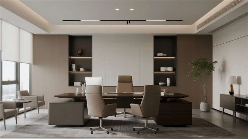在現(xiàn)代辦公空間的設(shè)計中,該項目以簡約美學(xué)為核心,打造出和諧統(tǒng)一的環(huán)境。建筑外觀采用流暢線條和玻璃幕墻,不僅增強(qiáng)自然光滲透,還營造出輕盈通透的視覺感。內(nèi)部空間中,開放式辦公室布局寬敞,工作站排列有序,綠植點綴其中,促進(jìn)團(tuán)隊協(xié)作與創(chuàng)新氛圍。經(jīng)理辦公室則注重私密性,簡約家具和功能性區(qū)域確保高效工作,同時通過柔和色調(diào)和藝術(shù)品保持舒適感。總裁辦公室更顯優(yōu)雅,落地窗引入城市景觀,會議區(qū)與休息空間無縫銜接,強(qiáng)調(diào)領(lǐng)導(dǎo)力的從容與靈感。整體設(shè)計貫穿現(xiàn)代簡約理念,中性色彩和自然元素減少視覺雜亂,提升專注度與幸福感。項目位于合肥,成為當(dāng)?shù)剞k公環(huán)境的典范,融合城市特色與可持續(xù)思維,打造出既實用又具美感的理想工作場所。