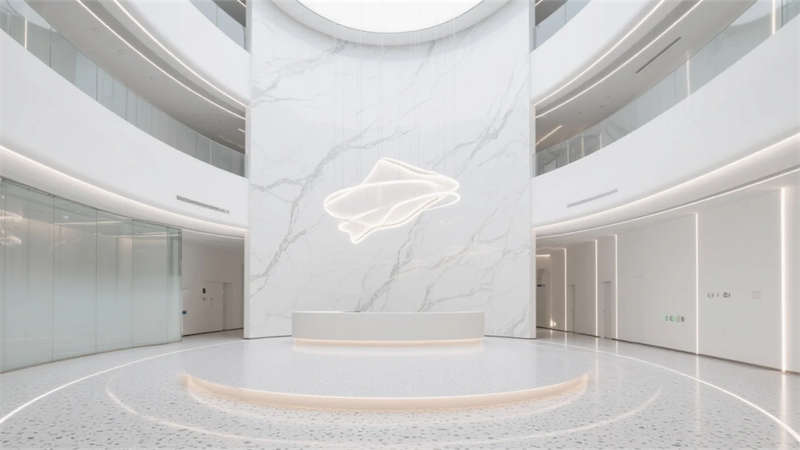 這不僅是容納工作的容器,更是滋養(yǎng)創(chuàng)新的生態(tài)系統(tǒng)。光庭底部的交互裝置實(shí)時(shí)可視化園區(qū)能源消耗,員工通過(guò)手機(jī)調(diào)整個(gè)人碳足跡;研發(fā)走廊的觸摸墻可一鍵預(yù)約實(shí)驗(yàn)室設(shè)備,物理空間與數(shù)字系統(tǒng)形成雙生鏡像。當(dāng)晨曦穿過(guò)中庭天窗,在懸浮樓梯投下幾何光斑,建筑本身已成為科技精神的朝圣地——這里沒(méi)有傳統(tǒng)辦公樓的機(jī)械重復(fù),只有持續(xù)進(jìn)化的空間智能體,在合肥的創(chuàng)新大地上生長(zhǎng)為聯(lián)結(jié)過(guò)去與未來(lái)的永恒坐標(biāo)。