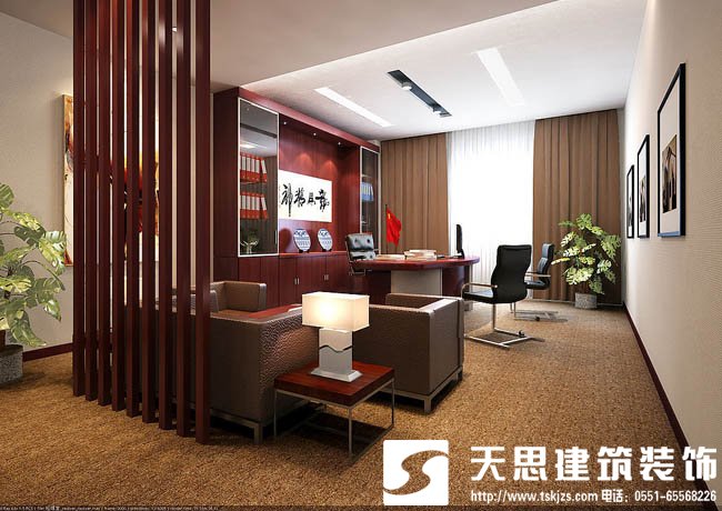 總經(jīng)理的辦公室一般都是單獨(dú)的一個(gè)房間,通常有不少企業(yè)都將高層領(lǐng)導(dǎo)的辦公室安排在一辦公大樓的最高層或平面結(jié)構(gòu)最深處,目的就是創(chuàng)造一個(gè)安靜、安全、少受打擾的環(huán)境。
