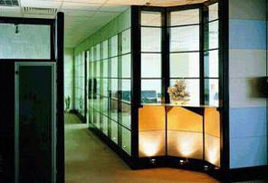 彩色玻璃隔斷是以彩藝玻璃作一種隔斷主體,主要是利用玻璃色彩變幻,營造出非凡藝術(shù)效果的辦公室隔斷,選用彩色玻璃隔斷時,最重要的是色調(diào)要與辦公室的整體裝飾設(shè)計風(fēng)格保持一致。