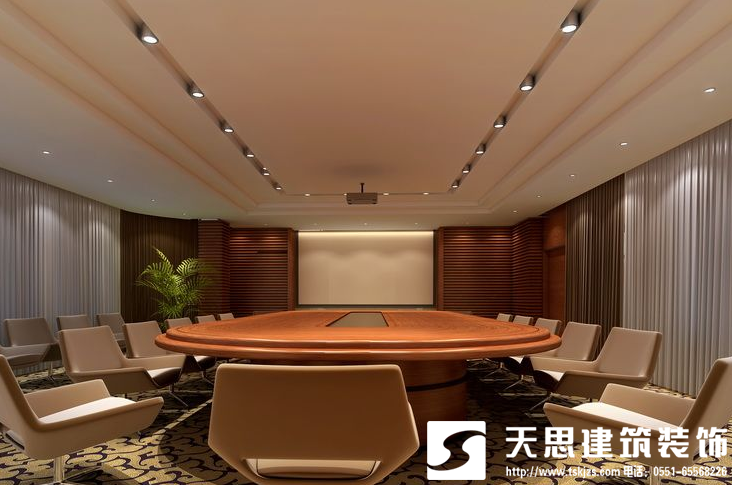 辦公室內(nèi)的會議室的座位安排,如何來安排會議的座位是會議室裝修設(shè)計中不可忽略的一個細節(jié)問題,會議室的座位安排原則:不僅要保證所有的參會人員能夠看到并能夠聽到發(fā)言人的發(fā)言,我們還要考慮到會議座位安排的商務(wù)禮儀。天思建筑裝飾設(shè)計根據(jù)多年辦公室裝修設(shè)計經(jīng)驗總結(jié)出會議室的布置的主要的五種方式:正式演講型、圓桌會議型、小組討論型、禮儀型、就餐座位安排。