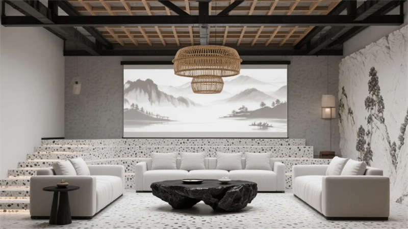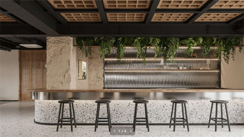 新中式工業(yè)風骨架支撐起詩意場景,智能光療系統(tǒng)與磁吸供電科技隱于無形。云會議艙的煙雨江南數(shù)字畫卷,與夯土吧臺的粗糲質(zhì)感形成時空回響。這里不僅是效率容器,更是滋養(yǎng)人文精神的山川微縮劇場,在機械理性中重建天人合一的當代范本。