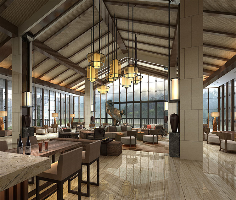 3、在酒店設(shè)計(jì)中尊重自然,愛護(hù)自然,自然的景觀以最大視角展現(xiàn)在室內(nèi),自然的元素,以藝術(shù)與提煉的方式巧妙借用到室內(nèi),因?yàn)樽匀皇亲蠲赖?,也是最重要?