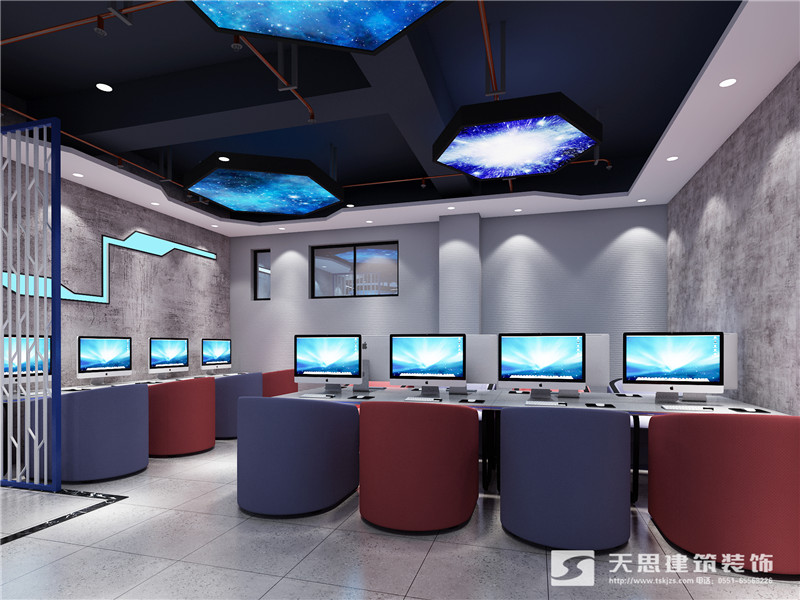 網(wǎng)咖設(shè)計(jì)的隔斷很少,只是用少量原始柱體來做裝飾,增加整個(gè)網(wǎng)咖的通透性,放大網(wǎng)咖的面積,是整體具有的大氣,恢弘的效果。