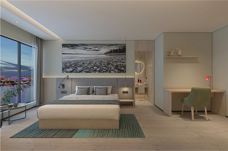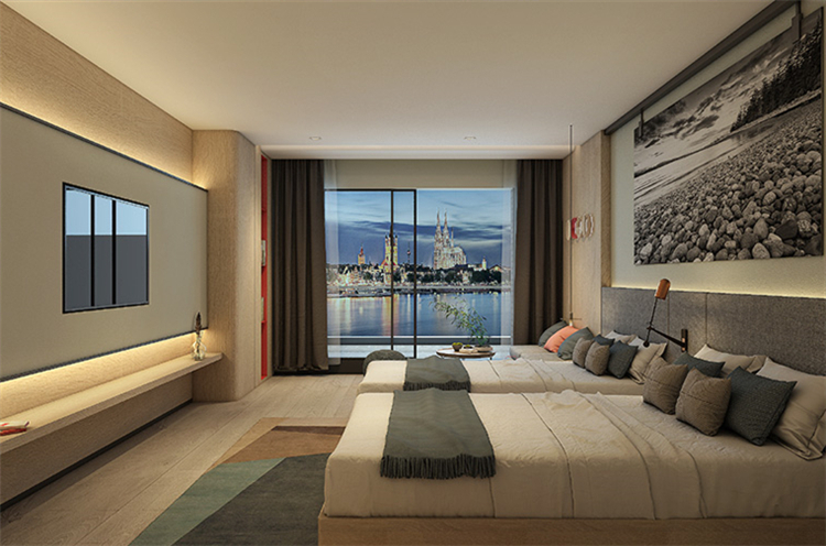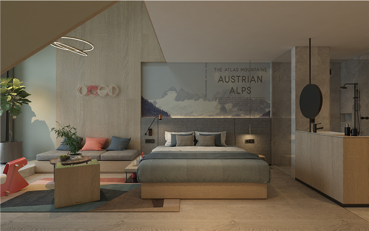 在功能的安排上人性化,為顧客帶來舒適的入住體驗與外立面相呼應,設(shè)計師在完整的用材體系上,增加了對比性明顯的色塊,高度提升了空間的趣味性和耐看度。