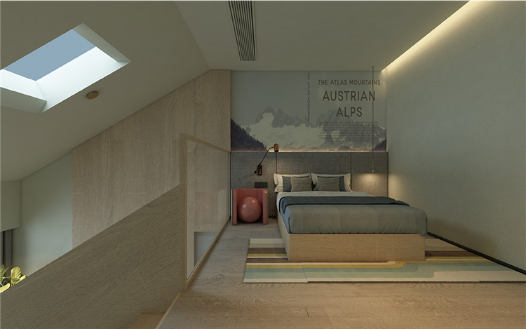酒店房間基本都使用了抽象風格的主題壁紙,通過獨特的視角帶給人們當?shù)貏e樣的風土人情。墻面以肉色的藝術(shù)涂料為主,與原木色的傾調(diào)完美融合,除此之外,室內(nèi)還有不少手作的小裝置,都是能不經(jīng)意間發(fā)現(xiàn)的小趣味。