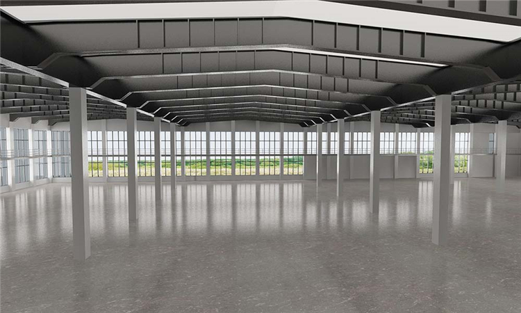 該廠房對地面承重的要求比較高,同時對廠房整體的的美觀也有所要求,在該案例的地面建造上使用混凝土做為地面地基,在地基的基礎(chǔ)上覆蓋一層環(huán)氧地坪,保證了美觀同時也起到防塵防靜電的作用。頂部為鋼結(jié)構(gòu)框架,消防、通風、及中央空調(diào)都在該案例中有所運用,在保證實用的基礎(chǔ)上不失大方和簡約的風格。
