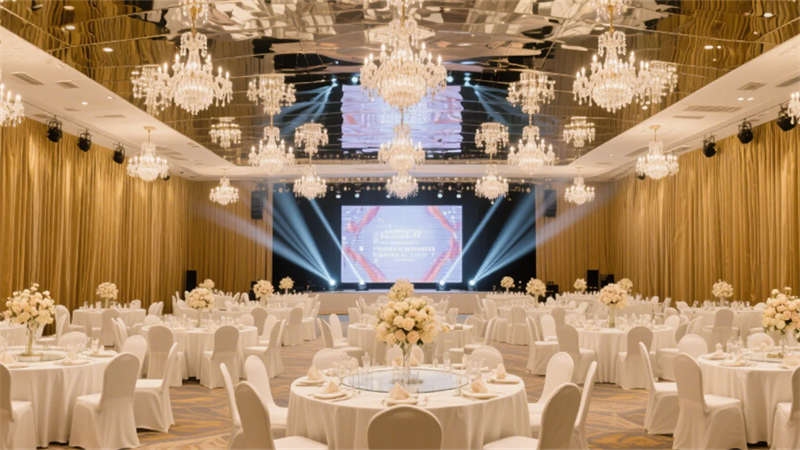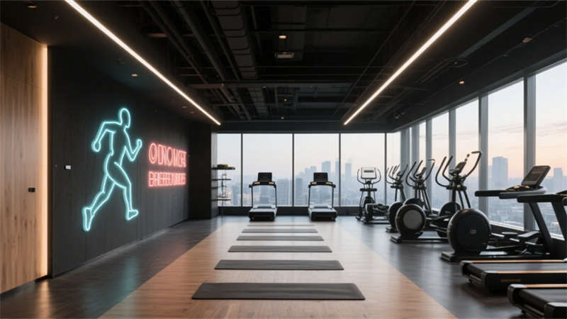 公共空間亮點紛呈:全日餐廳以垂直綠植墻與開放式廚房激活社交氛圍;無柱宴會廳憑借鏡面天花板與水晶吊燈陣列,打造層疊的光影盛宴;健身房通過全景落地窗將城市景觀融入運動場景,啞光黑器械與霓虹燈裝飾碰撞出現(xiàn)代活力。細節(jié)處更顯匠心——電梯間的金屬線條浮雕、走廊的幾何光影地毯,均以藝術化手法弱化傳統(tǒng)酒店的空間邊界。