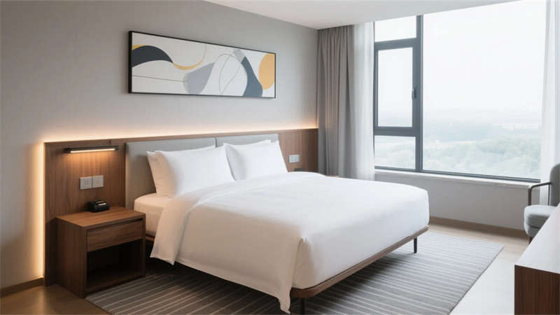 藝術(shù)品陳列成為空間的精神錨點(diǎn)。大堂抽象金屬裝置隱喻合肥科技創(chuàng)新基因,客房手作陶器呼應(yīng)本地文化脈絡(luò),電梯廳的石材拼畫(huà)以當(dāng)代語(yǔ)言解構(gòu)傳統(tǒng)山水意境。這些藝術(shù)介入并非孤立裝飾,而是與建筑結(jié)構(gòu)、功能流線(xiàn)深度交融。