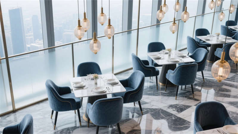 空間敘事聚焦于質(zhì)感細(xì)節(jié):皮革與絨面織物溫柔包裹休憩區(qū)域,定制吊燈灑落琥珀光暈,抽象藝術(shù)畫作點綴留白墻面。從高空餐廳的云端食趣到套房浴室的蒸汽氤氳,從大堂茶歇的咖啡香氣到泳池區(qū)的波光瀲滟,設(shè)計以人性化尺度打造多重感官體驗。