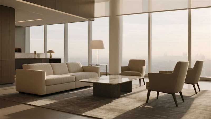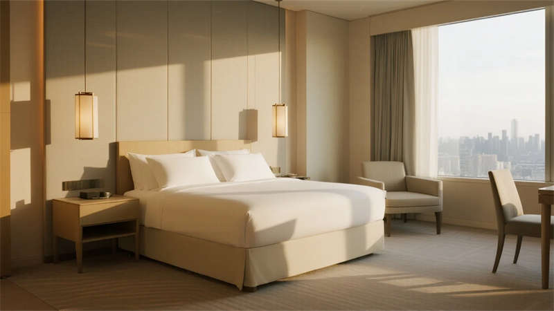 空間布局開(kāi)闊通透,巨大的落地窗將自然光引入室內(nèi),與精心設(shè)計(jì)的隱藏式燈光系統(tǒng)共同營(yíng)造出溫暖而富有層次的光影氛圍。從大堂的恢弘大氣到客房的靜謐溫馨,每一處細(xì)節(jié)都旨在為旅客提供一種沉浸式的、回歸本真的休憩體驗(yàn)。整體設(shè)計(jì)強(qiáng)調(diào)人與空間的情感連接,在簡(jiǎn)約中蘊(yùn)含深度,于現(xiàn)代中流露溫潤(rùn),成就了一處城市中可呼吸、可感知的詩(shī)意棲居地。