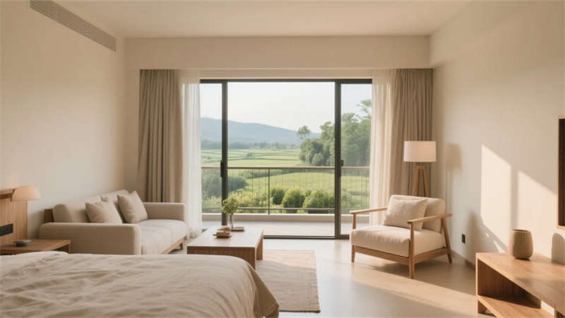 公共區(qū)域如大堂和餐廳,采用挑高與開放布局,光線成為空間的主角??头吭O(shè)計去繁就簡,注重舒適性與視野,每間房都能感受到不同的自然片段。屋頂露臺是項目的亮點,成為客人放空或社交的絕佳場所。整體設(shè)計不刻意追求裝飾,而是通過材質(zhì)、光影與自然對話,為都市人提供一處回歸寧靜的棲息地。