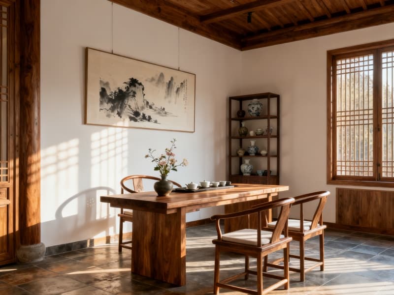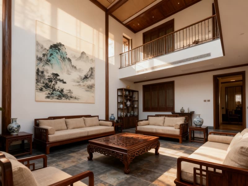 本設(shè)計(jì)以中式新古典風(fēng)格為核心,為合肥民宿勾勒出兼具古韻與雅致的居住空間。外觀設(shè)計(jì)融入傳統(tǒng)建筑的對稱美學(xué),青瓦與木構(gòu)相映,清晨柔光灑落時(shí),墻面與門窗的線條更顯溫潤,搭配門前錯落的綠植,悄然營造出清幽靜謐的氛圍,既保留中式韻味,又不失現(xiàn)代居住的舒適感。?