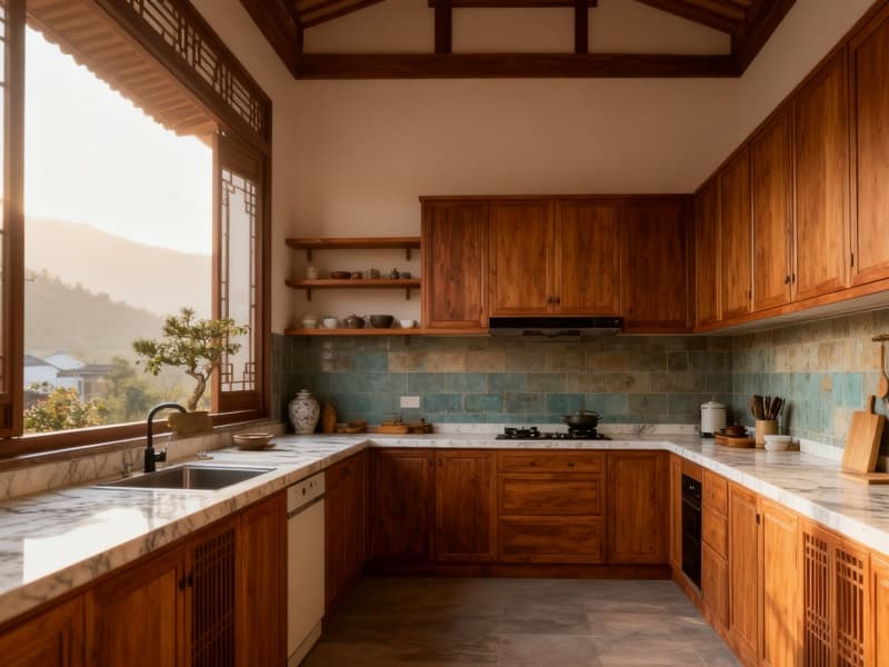 衛(wèi)浴與廚房區(qū)域同樣延續(xù)風(fēng)格,原木元素與簡潔潔具、廚具搭配,既保證實(shí)用功能,又讓中式新古典的寧靜感貫穿始終。整體設(shè)計(jì)摒棄繁雜裝飾,以清晨柔光為引,用原木紋理傳遞自然溫度,讓合肥民宿成為可暫避喧囂、感受中式雅致的寧靜居所。