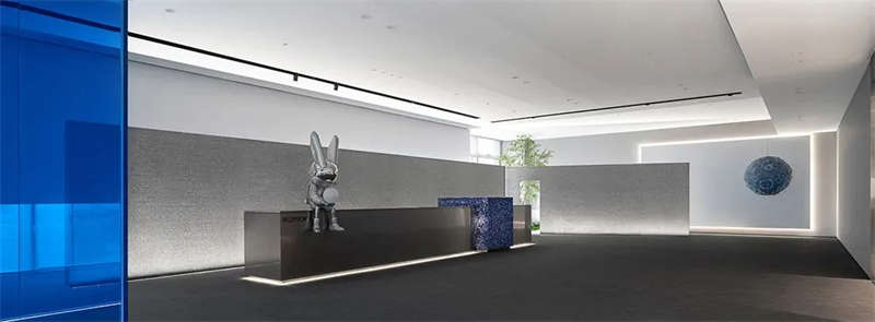 室內(nèi)空間由功能家具和裝置形成自然分隔,空間整體因祛除隔斷而產(chǎn)生了流動,這與科學(xué)巨匠斯蒂芬·霍金的宇宙觀具有一種相通性。太空兔和隕石一起來到這里,被安置在接待臺和會議室中,向來訪的人們講述宇宙的故事,猶如那些激動人心的創(chuàng)業(yè)事跡一樣,源于有限的奇點,產(chǎn)生突破界限的無窮能量。