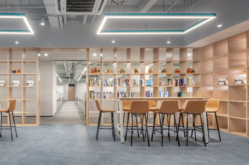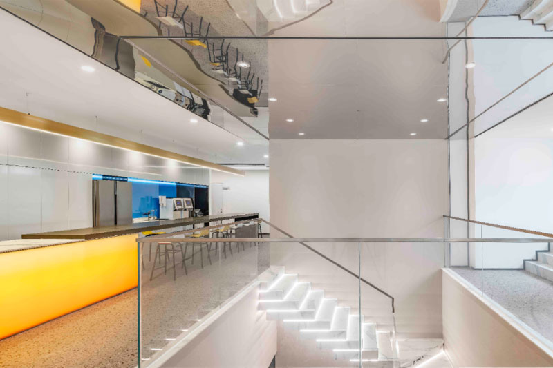 沉浸式體驗(yàn)人與空間交互,茶水區(qū)通過鏡面天花反射,光影在立體空間中流動,超動感空間氛圍就此而生,板塊的不斷更新為它帶來永不停歇的活力,這里是“巨人”的世界。