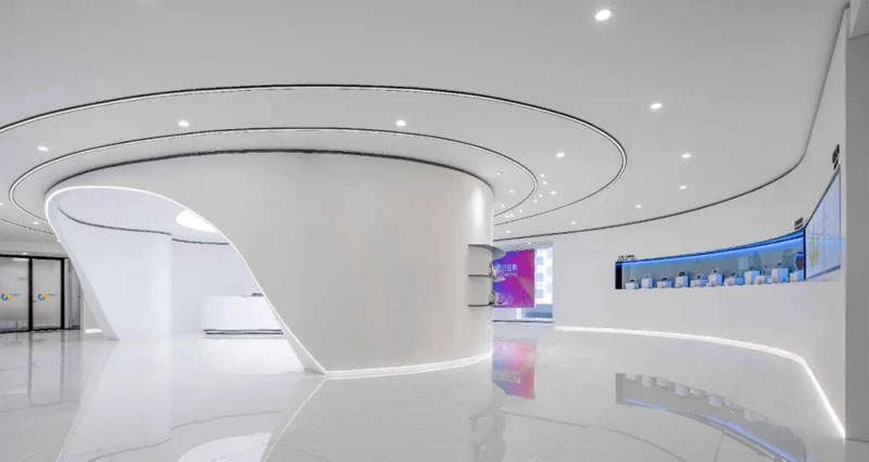 從踏入門廳開始,就劃定了宇宙視界,大廳以天花曲線燈帶統(tǒng)籌整體空間關(guān)系,異形包裹的空間內(nèi),橢圓形發(fā)光燈膜在營造時空感的同時輔助自然光線帶來尤為舒適的光照感為了將空間利用率達(dá)到最大。