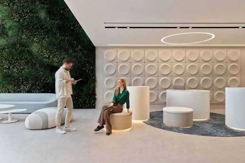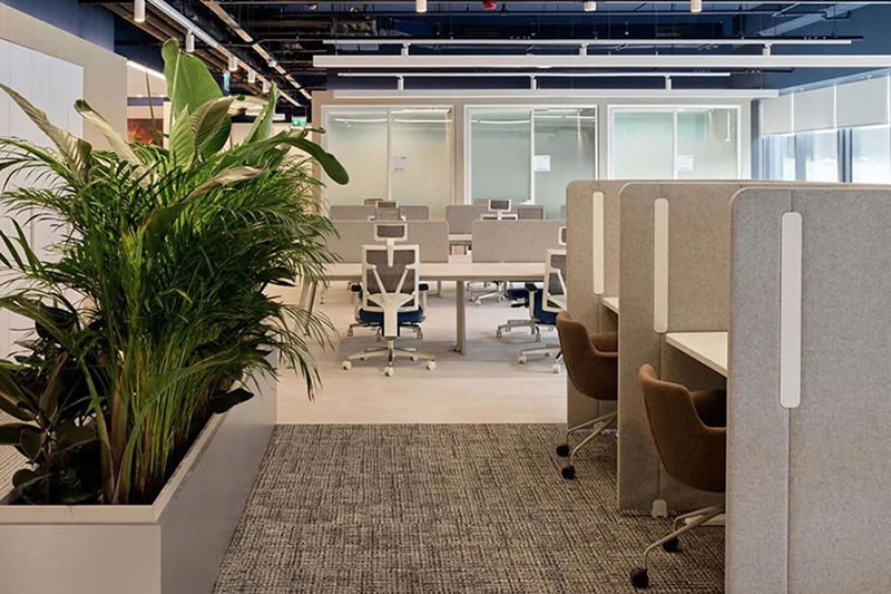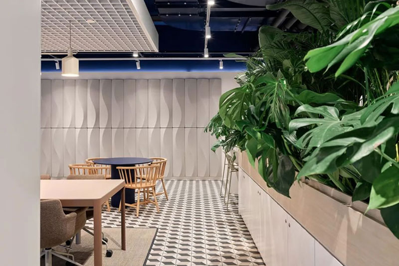 開(kāi)放協(xié)作、動(dòng)靜相容、靈活多元(寧?kù)o的工作區(qū)、舒適的休閑區(qū)、開(kāi)敞多元的社交區(qū)和協(xié)作區(qū)),建立在ABW基礎(chǔ)上的超強(qiáng)適應(yīng)性空間規(guī)劃支持人們多樣化的工作需求。簡(jiǎn)約溫馨的配色,加以韻律感的元素重復(fù)應(yīng)用,以及隨處可見(jiàn)的大量綠色植物,讓整個(gè)空間在恬靜溫婉中又洋溢著靈動(dòng)的韻致。