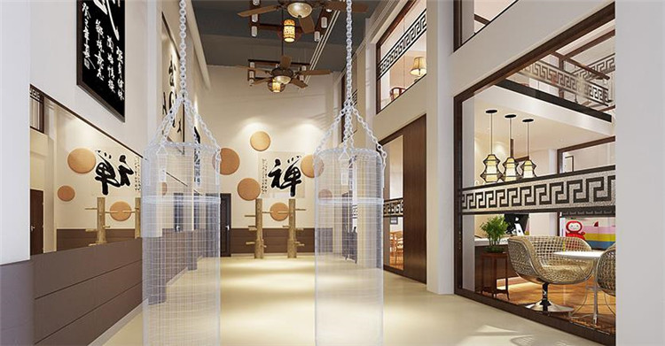 該拳館由三家門面打通,根據(jù)空間劃分成三個大區(qū)域,整體風(fēng)格和文化定位重點體現(xiàn)出典雅、簡潔、有歷史韻味的、體現(xiàn)中國歷史文化的博大精深的禪藝文化.