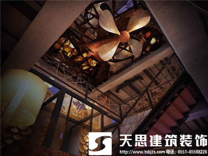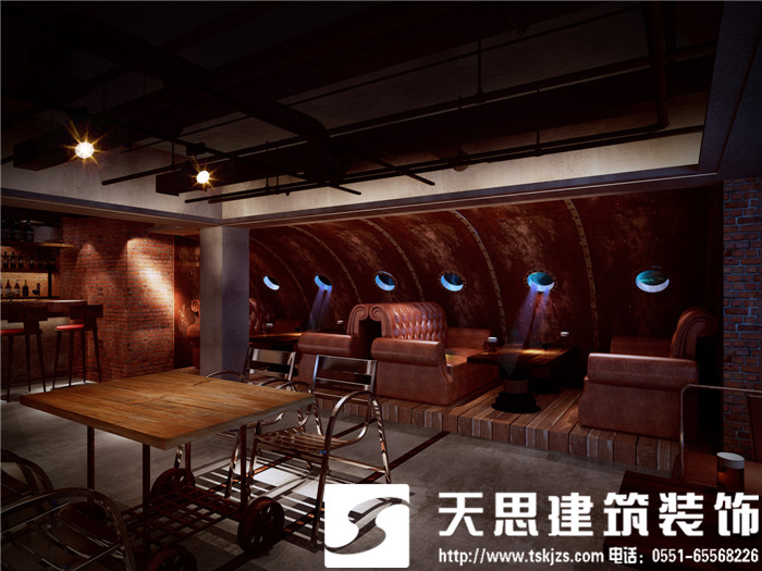 設(shè)計(jì)師讓空間呈現(xiàn)對話關(guān)系,彼此呼應(yīng)。二層的長方形水族魚箱,在一樓即為吧臺頂層的雅致裝飾,自然傾瀉的燈光給吧臺區(qū)足夠的光源,簡約環(huán)保的理念貫穿在空間設(shè)計(jì)里。節(jié)次鱗比的魚鱗造型墻飾,富有藝術(shù)感,特用原木制作,將韻味進(jìn)一步升華。