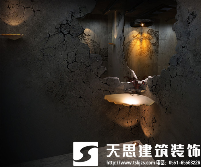 銅須水族主題會(huì)所,空間造型大氣磅礴,初入室內(nèi)即被粗獷自然的設(shè)計(jì)所震撼。給人一種無限擴(kuò)張的空間力量??臻g材料和色彩的運(yùn)用細(xì)膩而大膽,情節(jié)化的場景布置與戲劇性的張力設(shè)計(jì)營造出豐富的視覺享受。