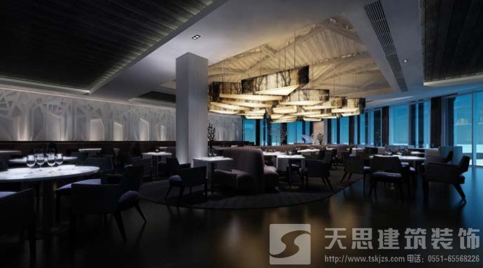 總設(shè)計說明:本案集餐廳和酒吧于一體,主題為樹影婆娑,采用大量的直線和簡單形體元素。給人的感覺是舒適、魅力、神秘、時尚、嫵媚。