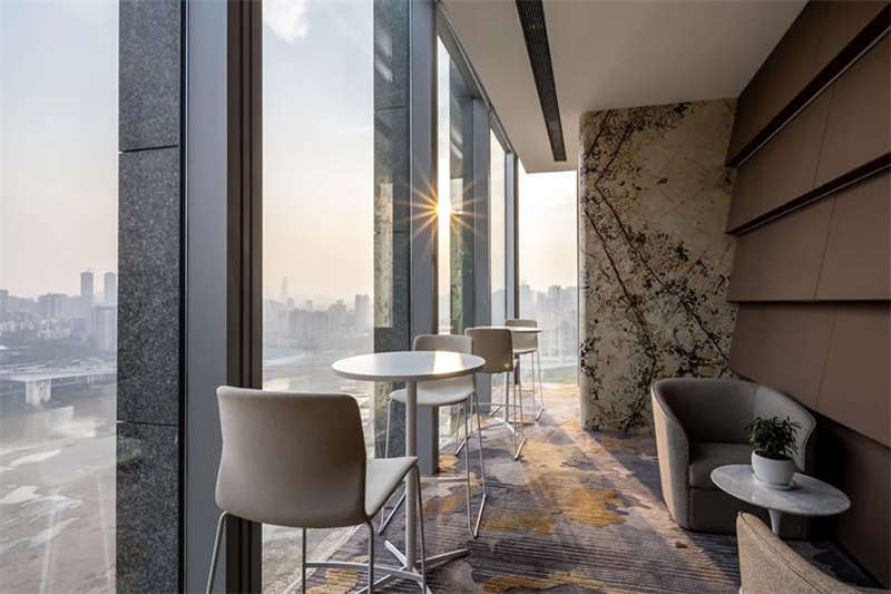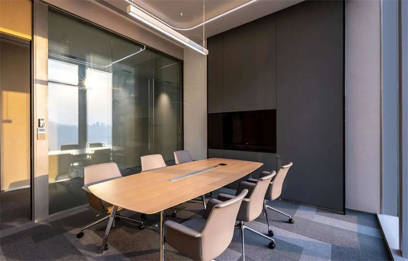 此辦公場所融合行業(yè)范式、藝術(shù)、辦公、會客和休閑功能,豐富的城市景觀與奢華的家具用材將空間美學(xué)統(tǒng)一起來,落地窗獲得更多明亮場域,空間通透舒朗,客戶進(jìn)入空間能感受到簡潔明亮的氛圍。