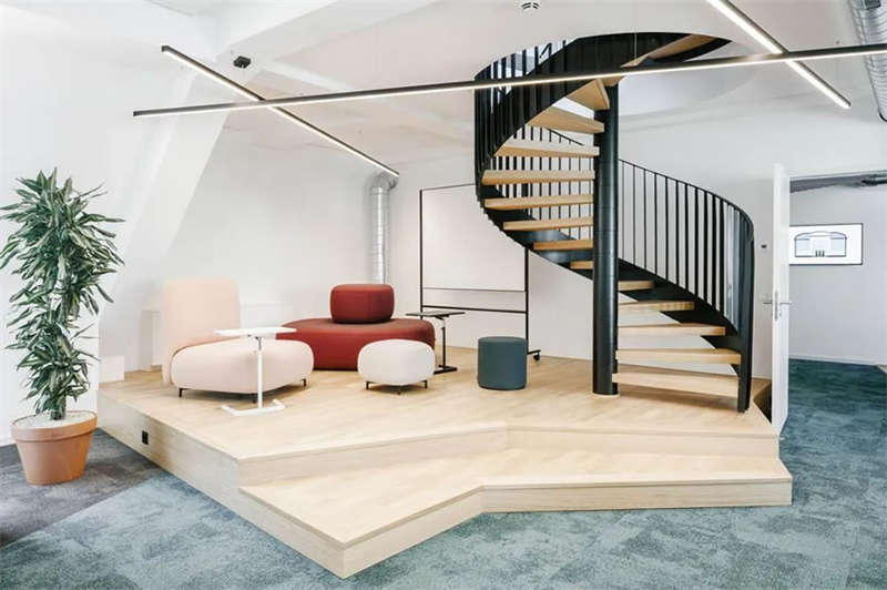 在與客戶的密切合作以及對方員工的積極參與下,設(shè)計(jì)師成功創(chuàng)建了一處精彩的工作空間,在這里,人們可以集中精力專注工作,也可以隨時(shí)隨地進(jìn)行各種不同的協(xié)作、交流、互動和頭腦風(fēng)暴。各種不同主題的廳廊空間、靈活多元的協(xié)作空間、以及巨大的屋頂露臺,讓這處空間變得獨(dú)一無二??臻g隨著人們的移動不斷變化著景觀視線和功能場景,豐富而精彩的設(shè)計(jì)讓這里步移景異,充滿驚喜和樂趣。