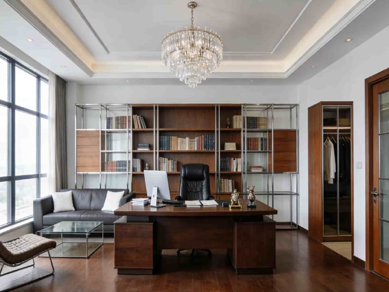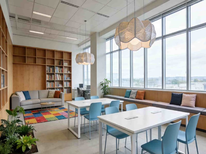 整體空間遵循現(xiàn)代簡約的設(shè)計(jì)理念,注重功能性與美觀性的平衡。色彩上以白色、灰色為主色調(diào),搭配少量木色和綠色作為點(diǎn)綴,既展現(xiàn)出工業(yè)空間的整潔與冷靜,又增添了自然溫暖的氛圍。材料選用上,追求質(zhì)感與耐用性,如金屬、玻璃、石材和木材等,通過巧妙組合,凸顯現(xiàn)代工業(yè)氣息。