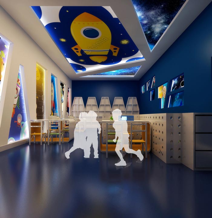 室內(nèi)設(shè)計師與室外設(shè)計師的終極目的就是希望空間可以融為一體,為孩子提供最最自然的成長環(huán)境,回歸到最原始的人類伊甸園中,在這個亦真亦幻地充滿大自然氣息的空間里,孩子們將發(fā)現(xiàn)更多的美。該案例設(shè)計師的想法就是空間處處可玩耍,在設(shè)計師看來孩子的想法是千奇百怪,同時也是純真無比的,設(shè)計師希望盡可能的滿足屬于他們的天性,讓孩子在玩耍的過程中可以不斷地成長,在安全方面防滑地面也保證孩子在玩耍時的安全問題。