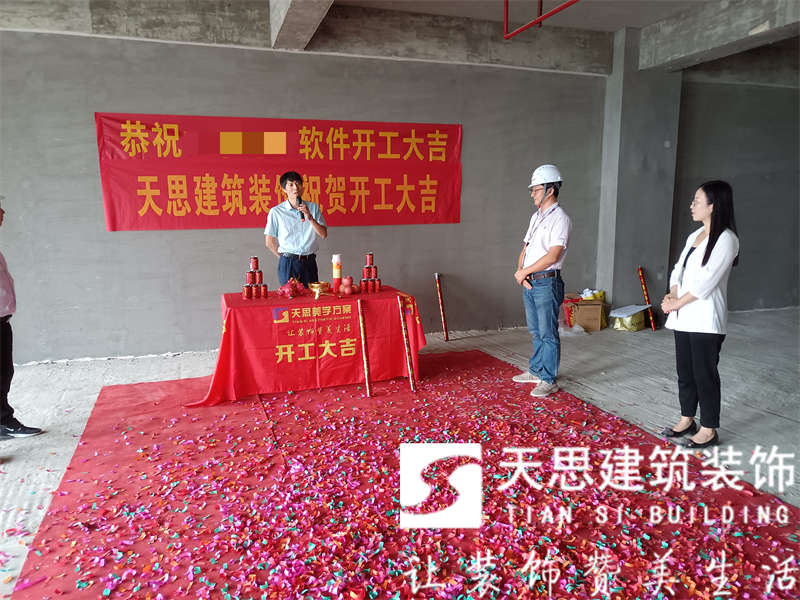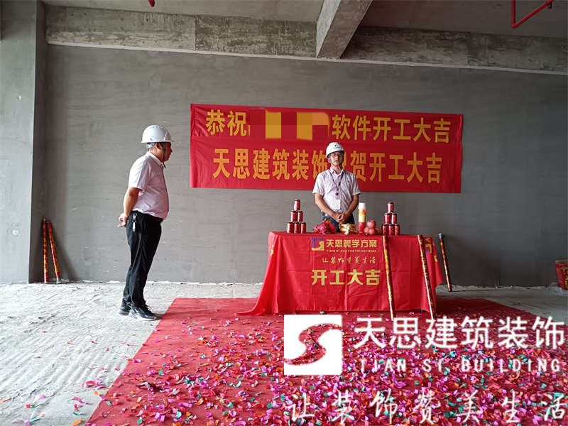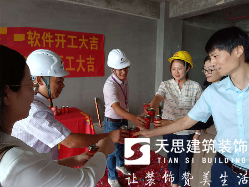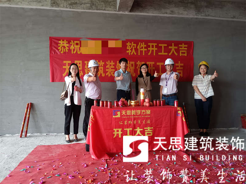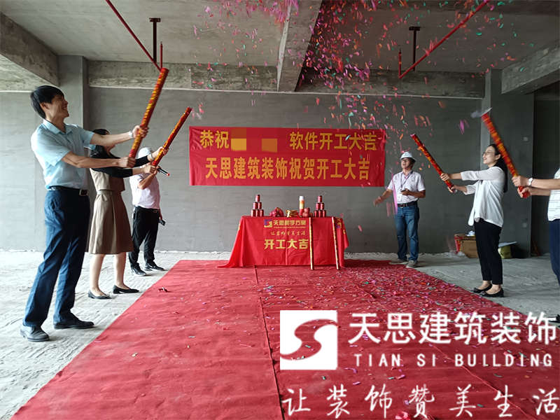 天思建筑裝飾恭祝**軟件公司2000平辦公室裝修工程開(kāi)工大吉