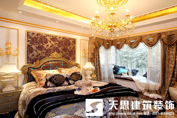 這個(gè)和上圖有明顯的區(qū)別,這是一個(gè)歐式裝修風(fēng)格的臥室。吊頂采用極為歐式還有布藝窗簾。燈槽也是采用了金色作為背景色。使整個(gè)空間看起來(lái)極為金碧輝煌,更中式的比較歐式顯得比較富麗堂皇極為惹眼。但是中式講究的低調(diào)內(nèi)涵,大氣和沉穩(wěn)。這只是燈飾在兩種中袖風(fēng)格中不同的作用。其實(shí)現(xiàn)實(shí)中裝修風(fēng)格多樣化,配合裝修材料和軟裝的搭配選擇合適的燈飾,能夠給你帶來(lái)更多的驚奇。
