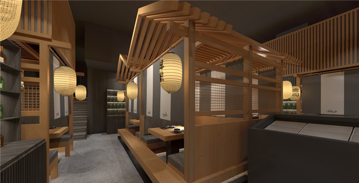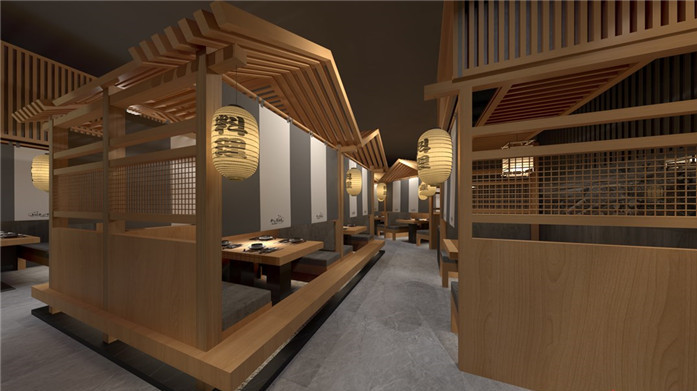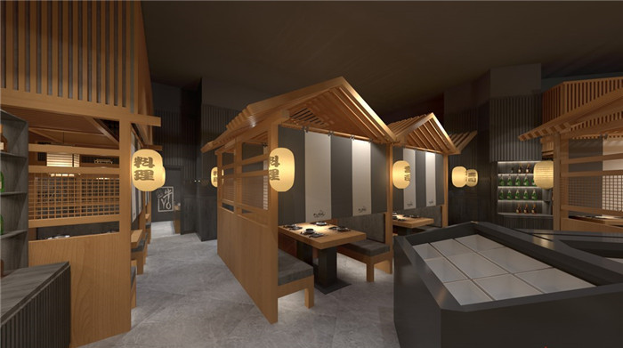 整體設(shè)計(jì)風(fēng)格上以日式精致私密性為主,每個(gè)餐臺都有獨(dú)立的隔斷進(jìn)行分割,這樣在整個(gè)空間中就會形成錯(cuò)落有致的空間布局,不僅美觀而且空間利用率高,同時(shí)保障了顧客就餐的私密性。