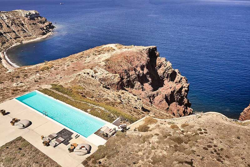 自然生態(tài)度假酒店坐落在圣托里尼島新月形狀的懸崖邊上,預(yù)計(jì)于今年5月初開放。在阿克羅蒂里古城附近,游客可以看到來自破火山口附近的碧藍(lán)海水和斑斕陡峭的熔巖層。這片建筑所帶來的與人類密切相關(guān)的體驗(yàn),進(jìn)一步點(diǎn)亮了周邊未經(jīng)雕琢的自然世界。復(fù)古飾品、大地色調(diào)和手工家具裝點(diǎn)了酒店的15間套房,筆直的線條、圣潔的白色與靈活的曲線等典型的圣托里尼建筑元素也在酒店中得以充分展現(xiàn)。在這里,人們可以盡享奢華的希臘式住宿,品嘗當(dāng)?shù)鼐虏穗?,感受棲于懸崖邊的全景泳池,在戶外社交中心參加各種有益身心的活動(dòng)。