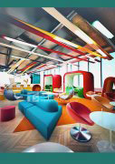 辦公室裝修主題色彩設(shè)計(jì),辦公室設(shè)計(jì)主題就是色彩,長(zhǎng)長(zhǎng)的彩條作為照明器具縱橫于天花板上,彌補(bǔ)了大面積裸露天花板的空缺,家具色彩的搭配和長(zhǎng)長(zhǎng)的彩條相呼應(yīng),整個(gè)辦公空間色彩鮮