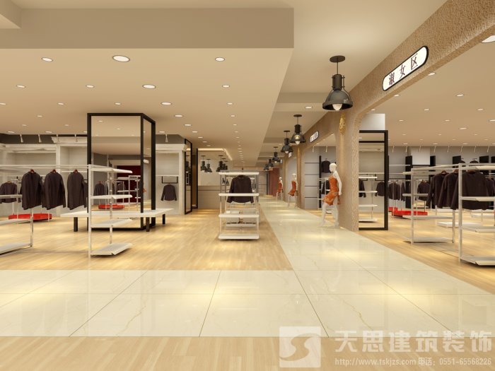商場公共購物區(qū)色彩的搭配不易過于復(fù)雜追求簡潔,因為過于絢麗的色彩在加上琳瑯滿目的商品會給人一種煙花繚亂的感覺,從而影響顧客的購物欲望和消費(fèi)的心情;商場設(shè)計重點在于將商品的特色展現(xiàn)出來。