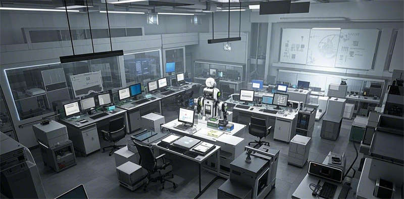 本次1000平方米機(jī)器人制作實(shí)驗(yàn)室設(shè)計(jì)以高效、科技與人性化為核心,打造多功能研發(fā)與生產(chǎn)空間。入口與接待區(qū)現(xiàn)代簡(jiǎn)約,配備企業(yè)標(biāo)識(shí)和科技感裝飾,營造專業(yè)氛圍。機(jī)器人組裝區(qū)寬敞實(shí)用,工作臺(tái)和自動(dòng)化設(shè)備布局合理,滿足高效生產(chǎn)需求。研發(fā)與設(shè)計(jì)區(qū)開放式布局,配備3D打印機(jī)和白板,激發(fā)團(tuán)隊(duì)創(chuàng)造力。測(cè)試與調(diào)試區(qū)科技感十足,測(cè)試平臺(tái)和監(jiān)控設(shè)備確保產(chǎn)品性能。材料存儲(chǔ)與物流區(qū)高效有序,自動(dòng)化搬運(yùn)設(shè)備提升效率。會(huì)議室與協(xié)作區(qū)設(shè)計(jì)簡(jiǎn)潔,智能設(shè)備支持高效溝通。