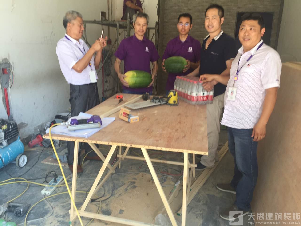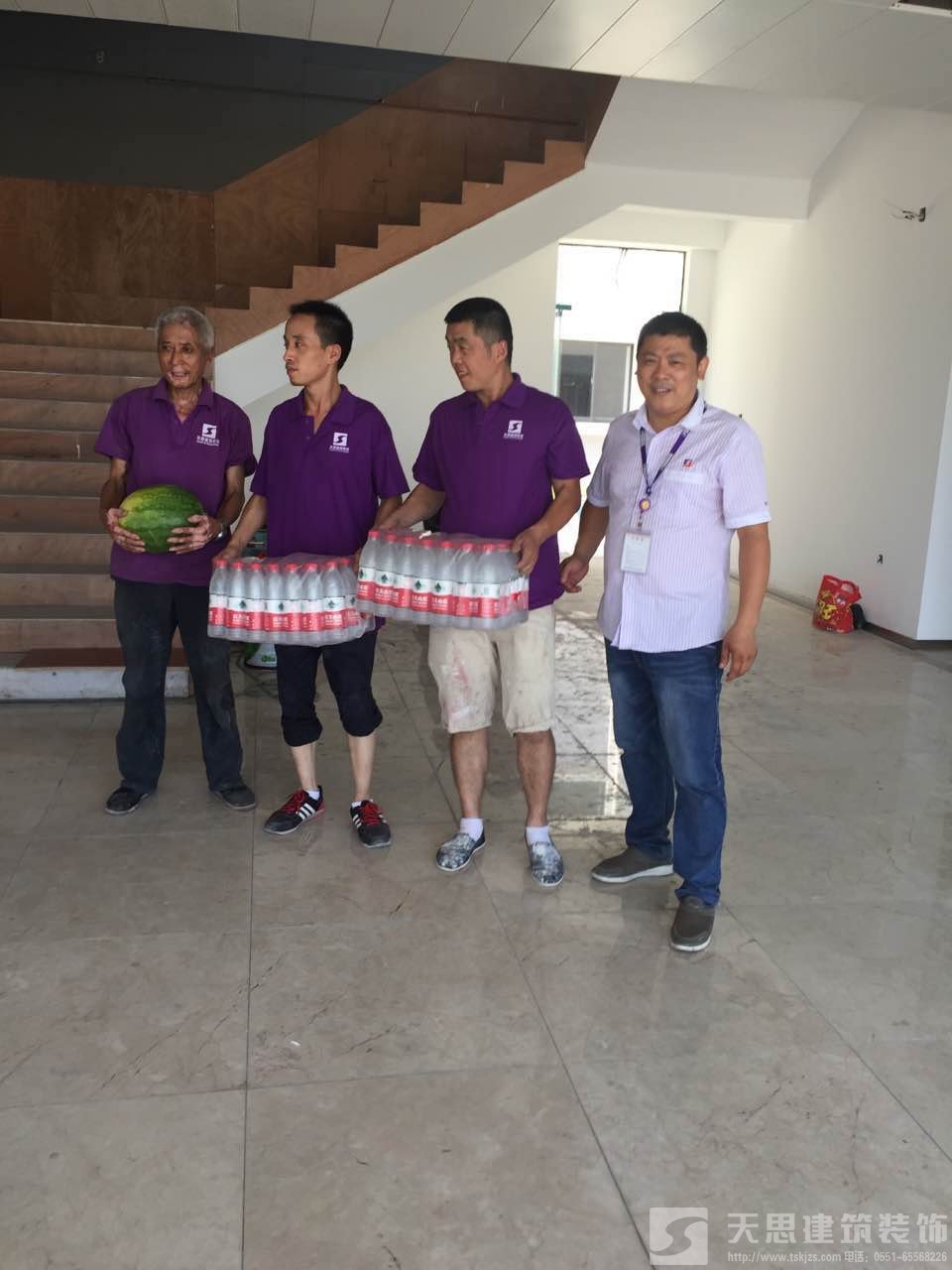 天思建筑裝飾公司為工作在第一線的天思項目經(jīng)理及工人送一點點小小的慰問品,謝謝你們的付出,你們辛苦了。天思一行對大家為趕工期、保質(zhì)量所付出的辛苦表示衷心感謝,并囑咐工地負責(zé)人要愛護裝修工人的身體,在保質(zhì)量為首要前提下抓好安全施工。施工盡量利用早、晚時間,盡量避開高溫時段;若發(fā)現(xiàn)有身體不適,要及時注意休息,情況嚴(yán)重的要及時送醫(yī)。
