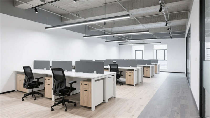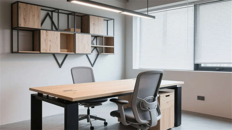 步入空間,現(xiàn)代簡約工業(yè)風(fēng)以原始肌理與智能元素碰撞出獨(dú)特韻律。淺灰水泥與原木的基調(diào)貫穿始終,裸露結(jié)構(gòu)構(gòu)件與暖光線性照明形成張力,綠植垂直裝置在冷峻材質(zhì)中注入自然呼吸感。開放式辦公區(qū)模塊化桌椅靈活組合,落地窗引入天光,軌道射燈精準(zhǔn)聚焦高效場景;獨(dú)立辦公室的磨砂玻璃隔斷兼顧隱私與通透,深胡桃木桌面沉淀商務(wù)氣質(zhì)。